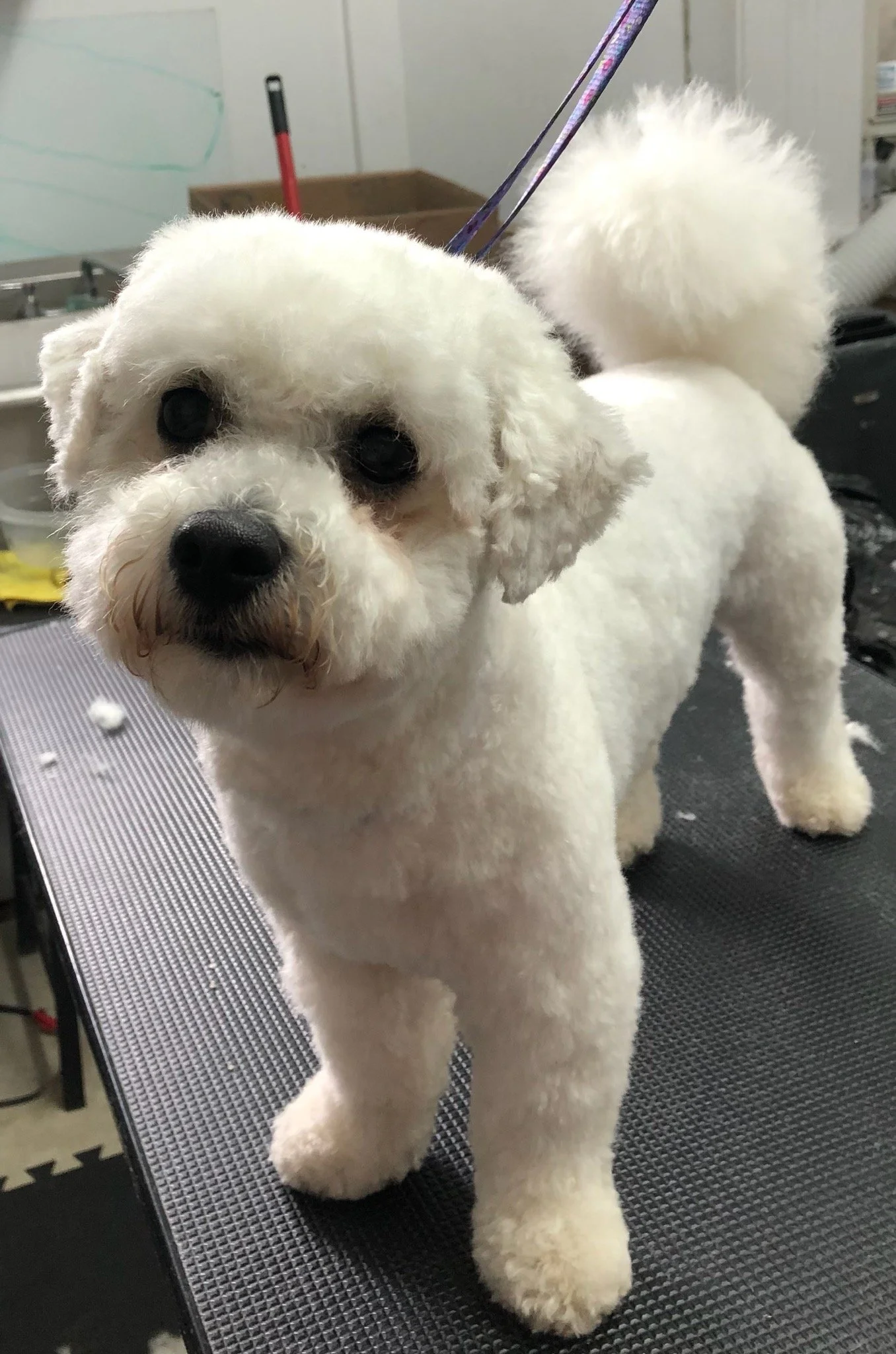 Appropriate shampoo and conditioner, nail trim and grind with any minor tidy up.